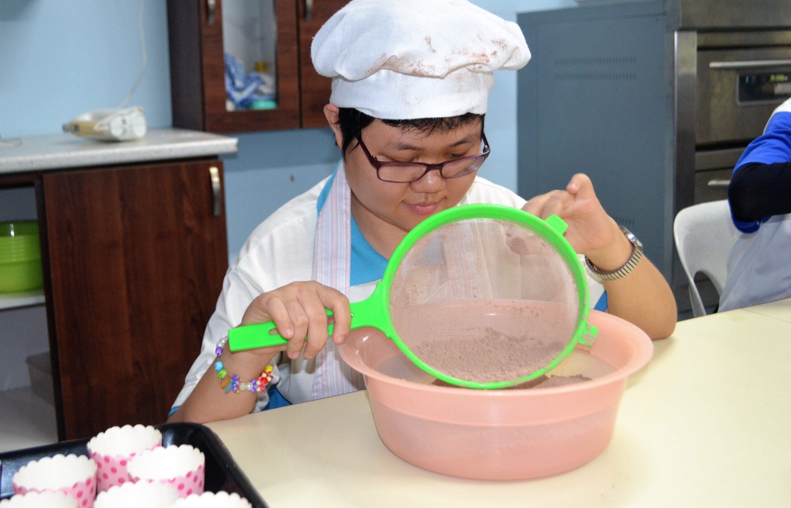 Baking being one of the main tasks is really enjoyed by all the trainees but only a few are actively involved during the actual activity. Those trainees who were directly involved learn to name, weigh and measure the ingredients required during the particular baking process. Then they were given hands-on experience to make cakes, buns and doughnuts. At the end of every baking session, the trainees were required to clean the utensils, wipe the table, sweep and mop the floor.