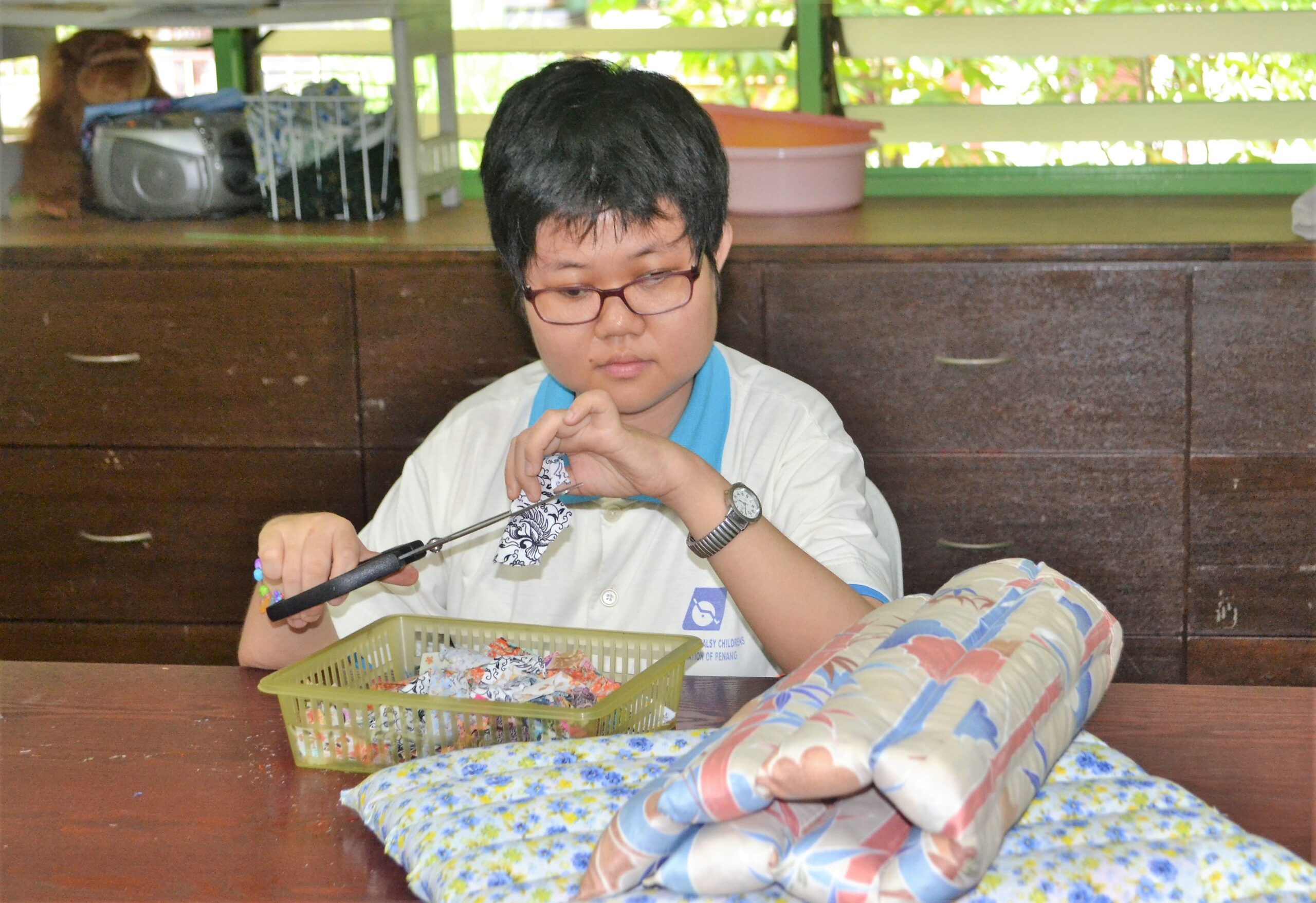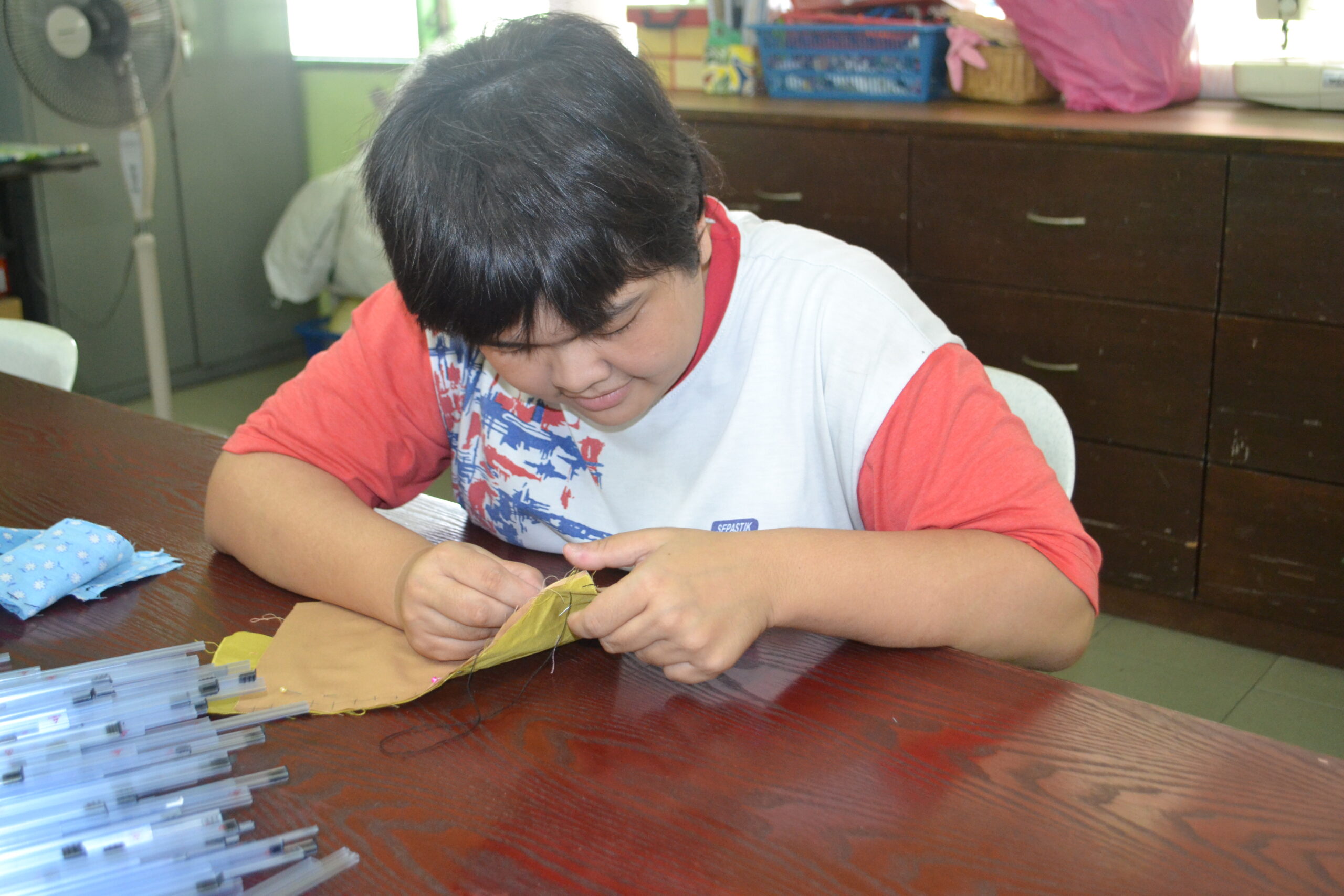 A few trainees underwent training to use the sewing machine. They learned to sew pieces of clothes to make patchworks blankets with minimum guidance. Some of them were assigned tasks such as cutting clothes into smaller pieces to be used as stuffing for chair backs and pillows.